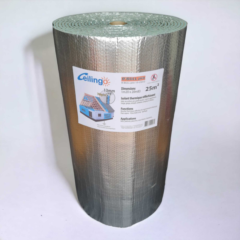 R'BULL pro 13 | Aislamiento Reflectante Delgado 13mm | Ignífugo | Burbujas + Aluminio | Techo Pared Techo